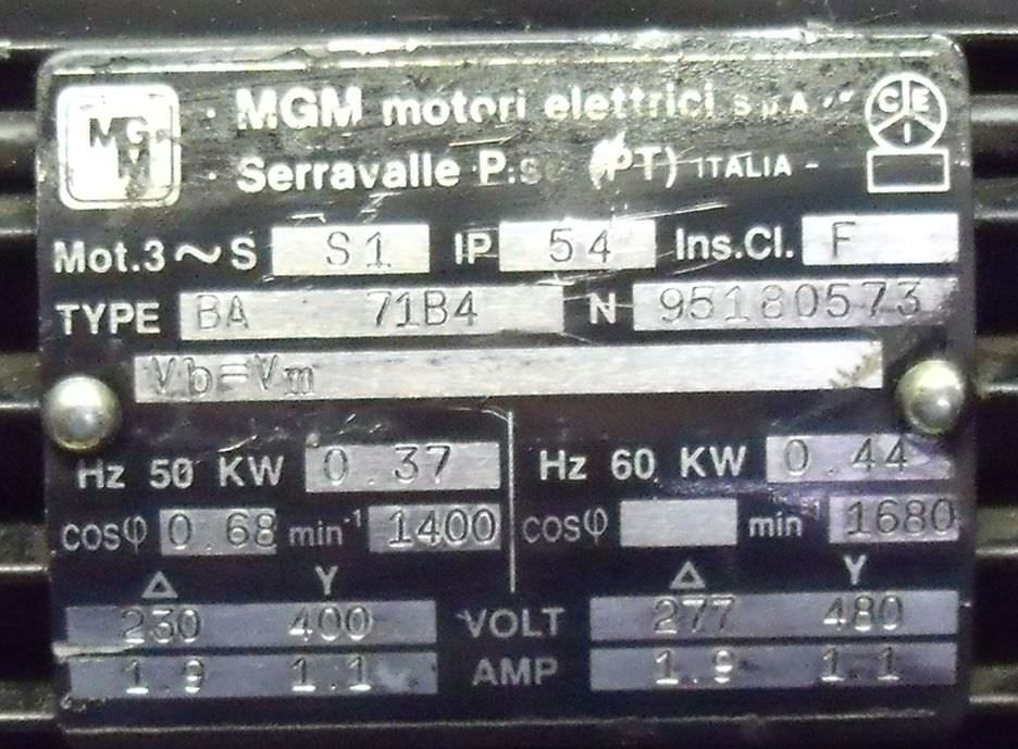 Maschinentyp: Elektromotor 0,37 kW 1400 U/min