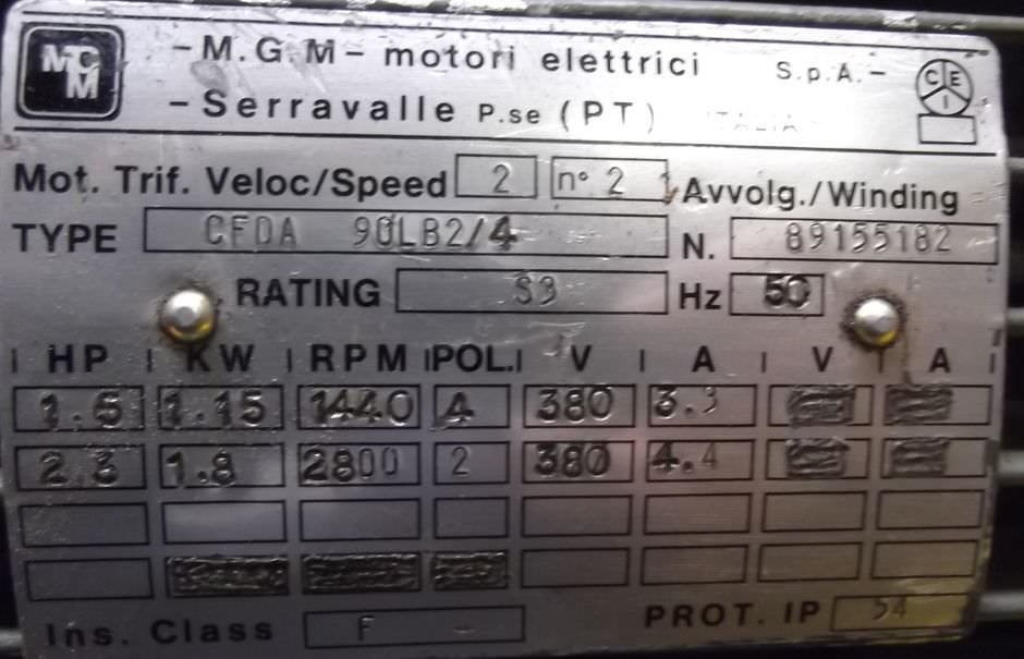 Maschinentyp: Getriebemotor 1,1/1,8 kW 57/114 U/min