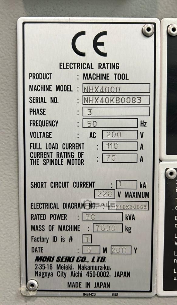Centro de mecanizado horizontal MORI SEIKI NHX-4000