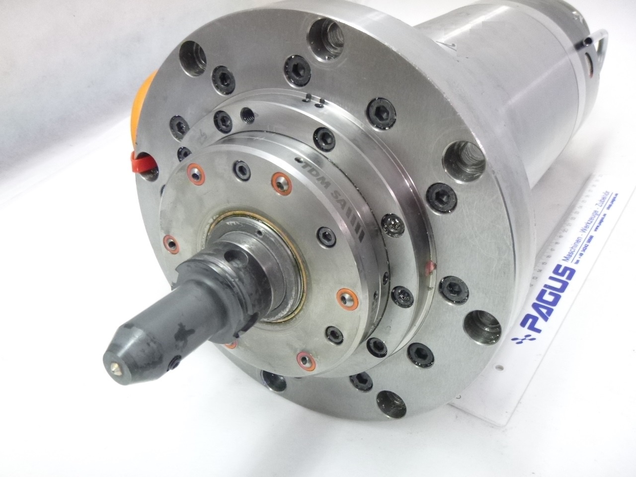 Motorspindel, Hochgeschwindigkeitsspindel, Schnellaufspindel TDM SA TH15.H40A.13-B Durchmesser: Ø 150 mm Spindellänge: 610 mm 0 - 25000 U/min Flanschdurchmesser: Ø 118 / 145 / 220 / 180 mm Wellendurchmesser: 25 / 40 mm ca. 1,0 m Anschlusskabel Überholt ! geprüft ! Abmessungen: 610 x 220 x 220 mm