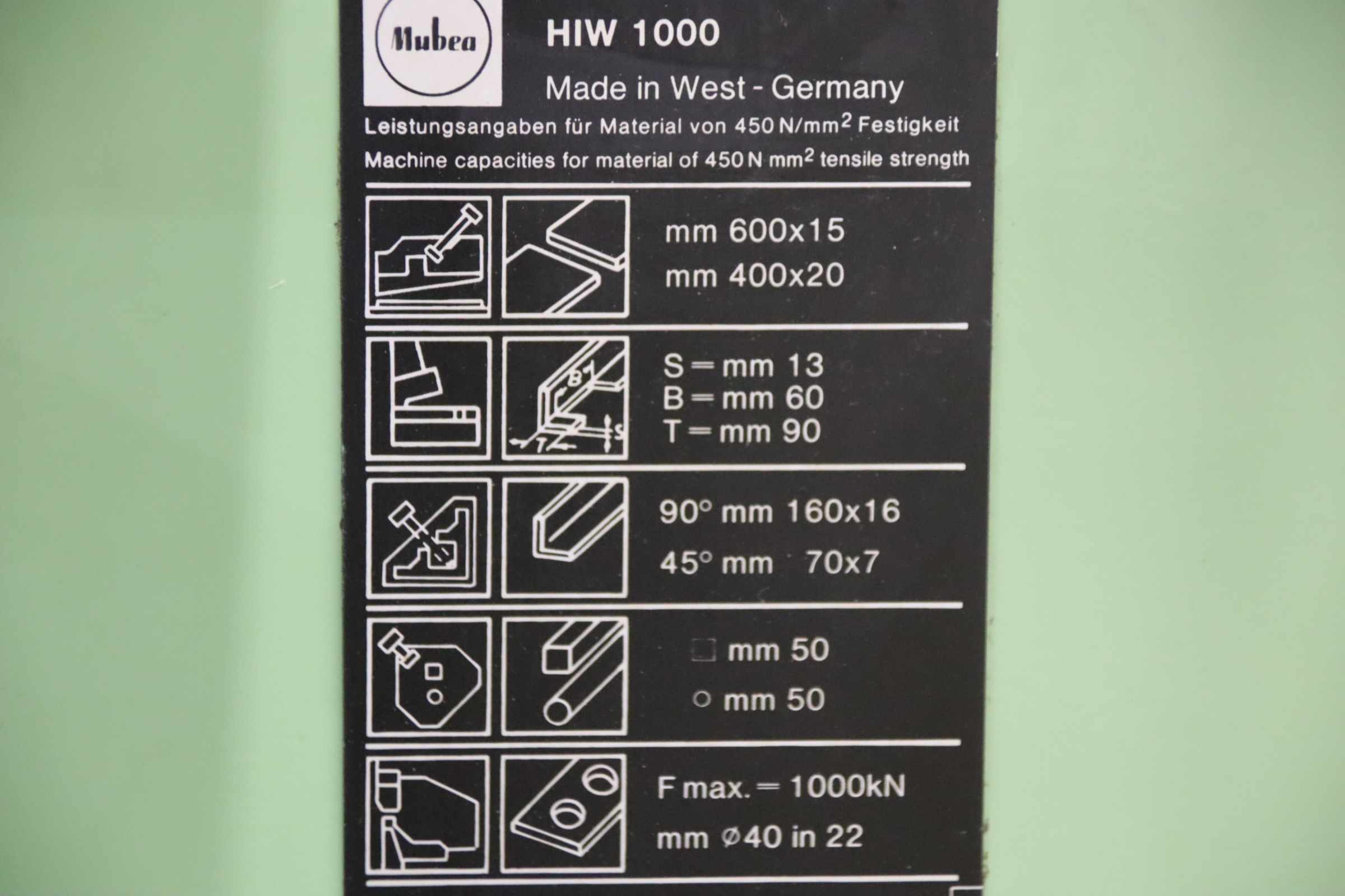 | 1998 | MUBEA | HIW 1000/610 | 18400 EUR | [Oct 2019] |