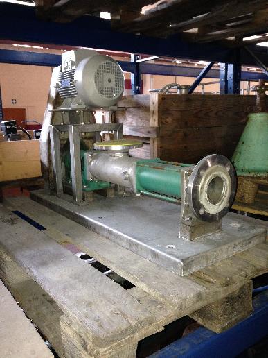 Gebrauchte Netzsch NM038BH. Nr.: 469544 Kommnr.: 63008879 Bj.: 2014 Fördermenge: 3m³/h bei 145 1/min 3,5m³/h bei 177 1/min Druck: 6 bar, Temp. 95°C LBH: 1500 x 200 x 300 mm Gewicht: ca. 80 kg auf Wunsch mit Ersatzteilen (Rotor, Stator, etc.)
