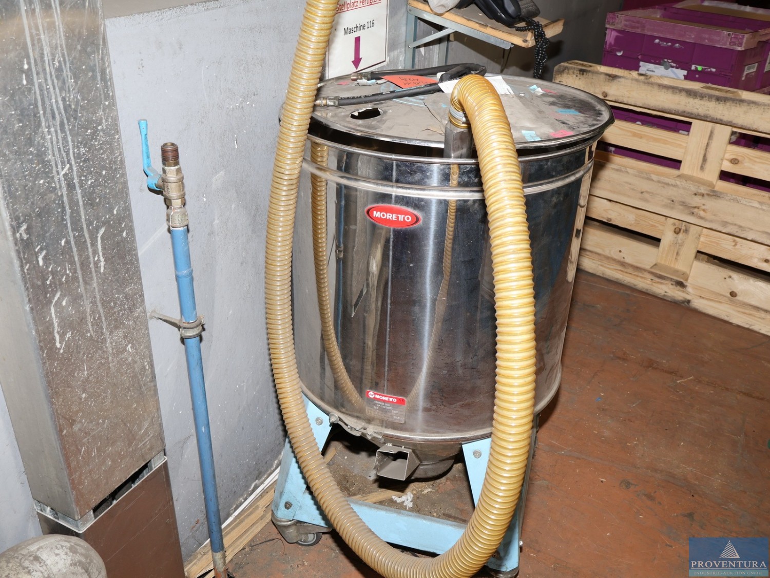 Zentralversorungs- mit Trocknungsanlage Hersteller Moretto Bestehend aus den nachstehenden Komponenten: 1,0 St. Trockenlufttrockener Hersteller Moretto, Typ: SX25, Baujahr: 2016 1,0 St. Rohrbahnhof Hersteller Moretto 4,0 St. Trocknungstrichter, Inhalt: 200 Liter, mit Heizung, Typ: H15T SOPP, Baujahr 1999 1,0 St. Trocknungstrichter, Inhalt: 100 Liter, mit Heizung, Typ: H15T SOPP, Baujahr 1999 1,0 St. Trocknungstrichter, Inhalt: 30 Liter, mit Heizung, Typ: H15T SOPP, Baujahr 1999 8,0 St. Materialförderer zu den Trocknungstrichter, Typ: R101 042, Baujahr: 1999 8,0 St. Materialförderer zu den Maschinen, Typ: R101 042, Baujahr: 1999 1,0 St. Vacuumpumpe