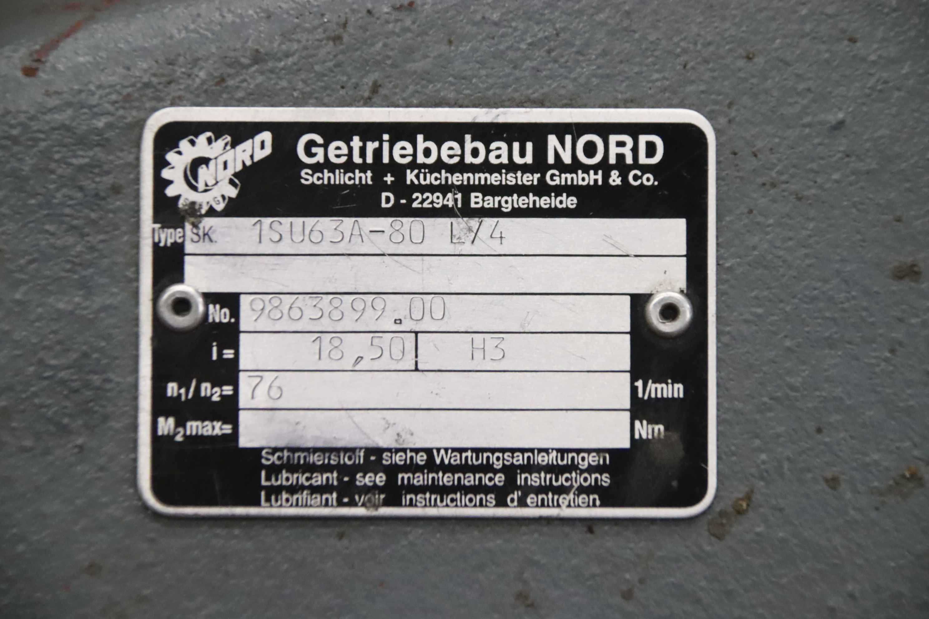 Maschinentyp: Getriebemotor 9,2 kW 76 U/min