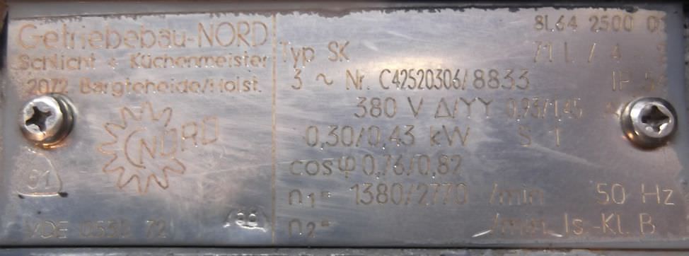 Maschinentyp: Getriebemotor 0,3/0,43 kW 95/190 U/min