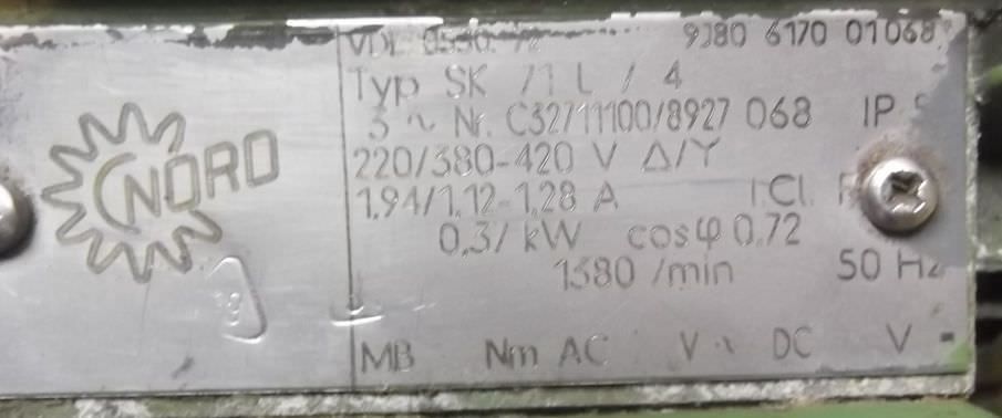 Maschinentyp: Getriebemotor 0,37 kW 45 U/min