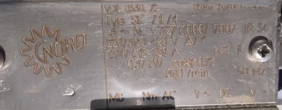 Maschinentyp: Getriebemotor 0,37 kW 53 U/min