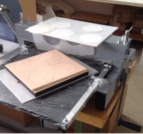 Angeboten wird eine Rollenstanze für Stanzarbeiten bis A3 . Die Stanzform wird unter der Walze durchgezogen.