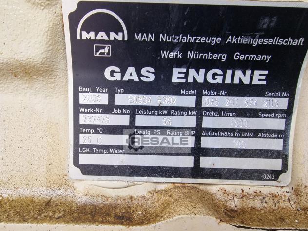 Gebrauchte MAN E0836 E302. MAN E0836 E302 BHKW im Akustikdach. Leistung: 70kW Betriebsstunden: 4,500 Jahr: 2011 Brennstoff: Erdgas Spannung: 400 Hz: 50 Lieferumfang: Motor, Lichtmaschine, Bedienfeld, Akustikhaube, Haubenlüfter, Motorwasserpumpe Die Grundfläche des Blockheizkraftwerks beträgt 3,4 Meter x 1,14 Meter inklusive Bedienfeld. Es wurde alle 1000 Stunden gewartet. Das Gerät muss erst nach 24.000 Stunden überholt werden. Der Motor wurde verriegelt, der Haubenlüfter und die Motorwasserpumpe wurden eingeschaltet. Das Gerät befindet sich in einem warmen Heizraum und ist daher in gutem Zustand. Preis: Bitte bewerben