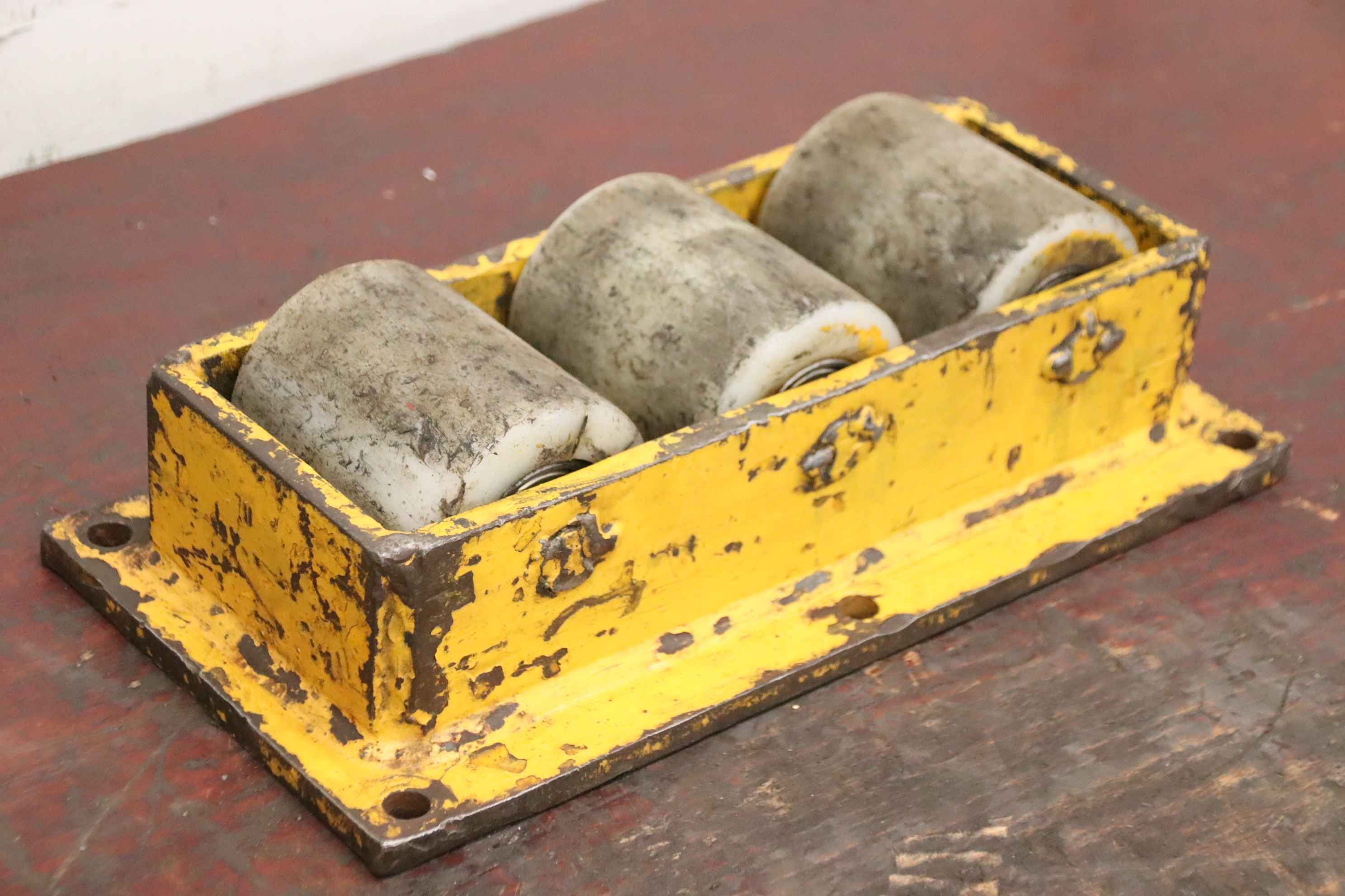 Schwerlast-Transportrollen, Maschinenrollen, Transportwagen, Schwerlastwagen, Panzerrollen, Maschinen-Transportrollen Lenkwerk -Maschinen-Transportrollen: Panzerrollen 2 Stück -Traglast: t -Auflagehöhe: 100 mm -Rollen: Ø 83 x 98 mm Methacrylat -Abgabe/Preis: komplett -Abmessung jew.: 360/185/H100 mm -Gewicht: 12,9 kg/St.