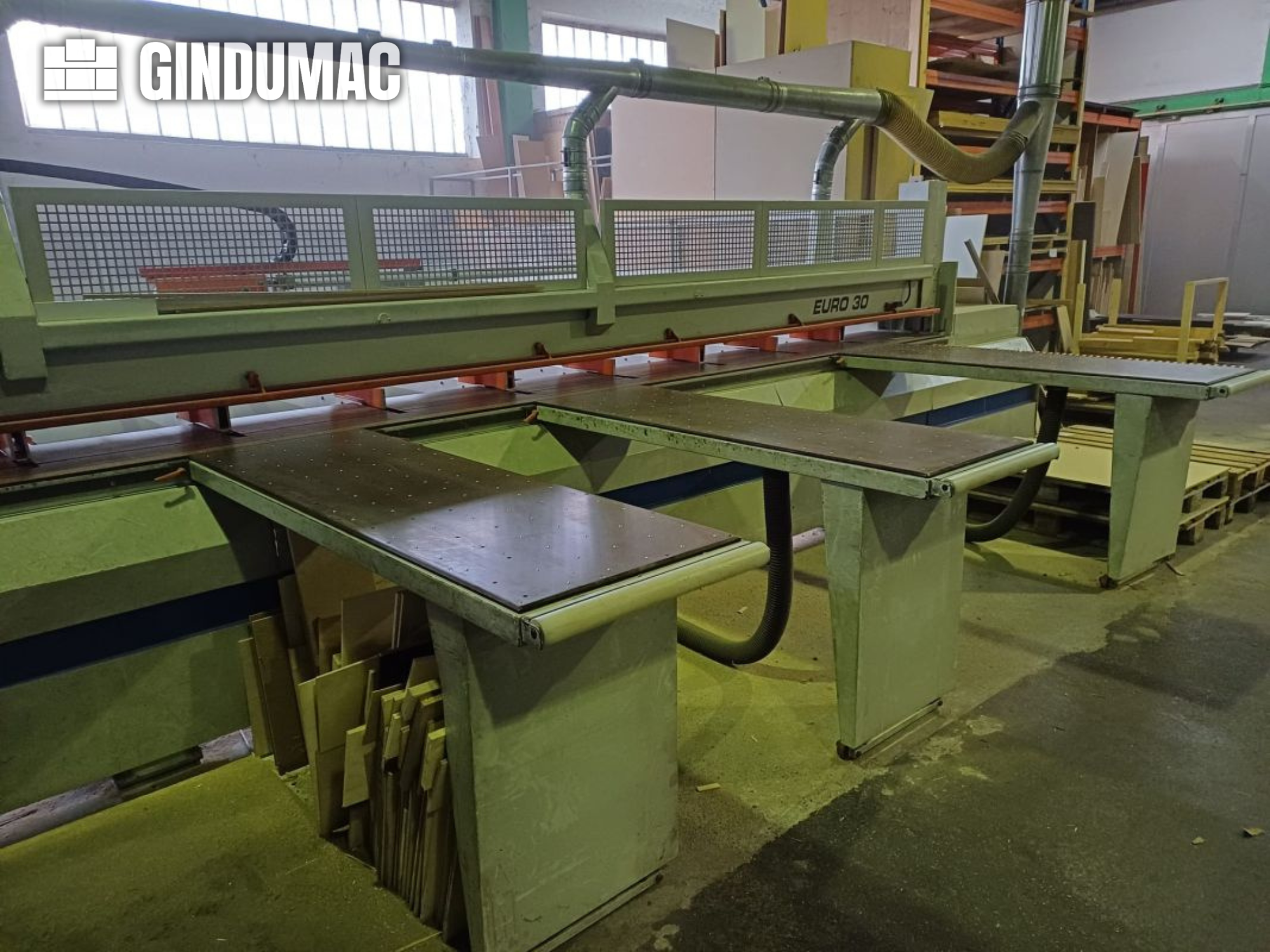 Gebrauchte PANHANS 693 / EURO 30. Eine Paneelsäge wurde 1994 hergestellt. Diese PANHANS 693 / EURO 30 hat eine Schnittlänge von 5800 mm und eine Schnittbreite von 5150 mm. Er verfügt über einen hinteren Stütztisch und mehrere Stützbalken zur besseren Stabilität. Wenn Sie hochwertige Schneidemöglichkeiten suchen, sollten Sie die PANHANS 693 / EURO 30 Maschine in Betracht ziehen, die wir zum Verkauf anbieten. Kontaktieren Sie uns für weitere Informationen.