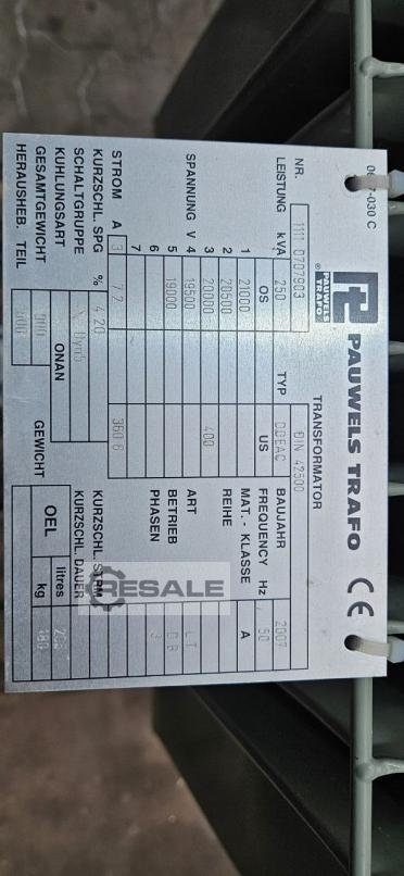 Maschinentyp: Transformator 250 kVA 20/0,4 kV