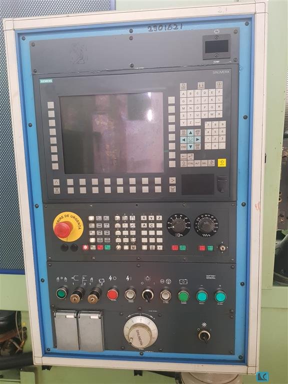 x-Weg: 900 mm y-Weg: 300 mm z-Weg: 1000 mm Steuerung: Siemens Sinumerik 840D Werkstückdurchmesser - max.: 1600 mm Modul - max.: 20 mm Kopfkreisdurchmesser: 350 mm Fräsdorndurchmesser: 375 mm Gesamtschlusswert: 80 kVa Maschinengewicht ca.: 33,5 t Raumbedarf ca.: 10,530 x 6,375 x 4,680 m Vorschubgeschwindigkeit: - X-Achse 1 bis 3000 mm/min - Y-Achse 1 bis 3000 mm/min - Z-Achse 1 bis 4000 mm/min Spindeldrehzahlen in 1/min: - Werkzeug 26 bis 265 - Werkstücktisch 0 bis 8 Ausstattung/Zubehör: - Motorfräskopf M 2 - Fräsdorne - Ölkühler - technische Dokumentation Die Daten fü, dieses Inserat wurden erstellt mit ModulMWS - die Maschinenverwaltung von LogoTech oHG.