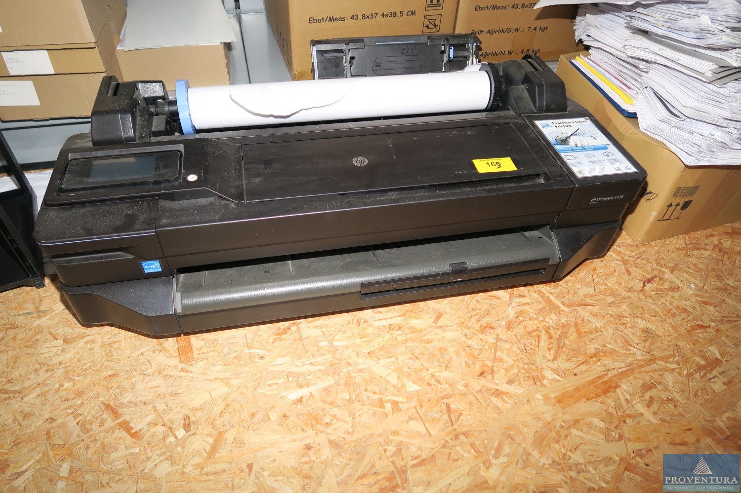 Plotter HP Designjet T120 ePrinter, Rollen- und Einzelblatteinzug bis A1, Tischgerät, angeschafft 2013 für 96,33 EUR netto, BW 31.05.23 0,50 EUR netto