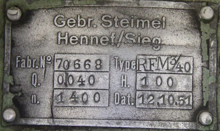 Hydraulikpumpe, Ölpumpe, Zahnradpumpe -Leistung: 0,8 kW 1370 U/min -Schutzart: -Abmessungen: Ø 154/H485 mm -Gewicht: 26 kg
