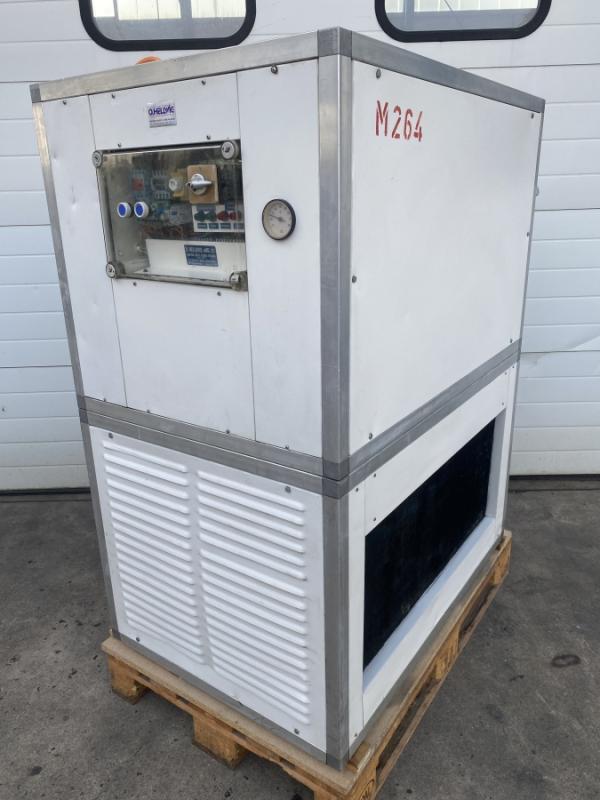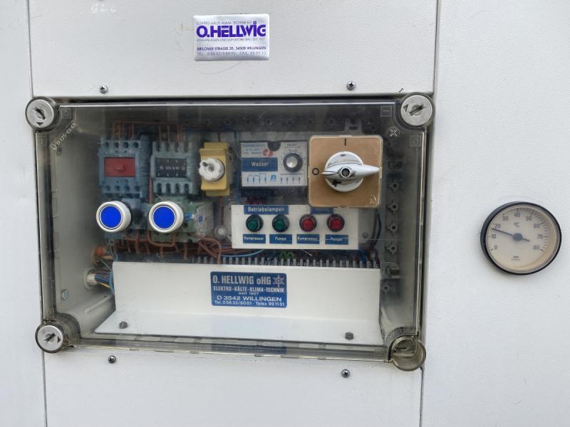 Kühlaggregat, Kühlwasser-Rückkühler, Wasserkühler, Chiller O. Hellwig Baujahr: ca. 1995 Kühlleistung ca. 6 kW Nennleistung Kühlaggregat 3 kW Kältemittel R422D Wasser-Tankinhalt ca. 35 Liter Fördervolumen Umwälzpumpe 40 Liter/min Pumpenleistung 0,63 kW Wasseranschlüsse 1/2 Zoll Netzanschluß 380 Volt, 50 Hz - Temperatureinstellung über Drehpoti Platzbedarf L x B x H 1100 x 750 x 140 mm Gewicht 285 kg; gebraucht