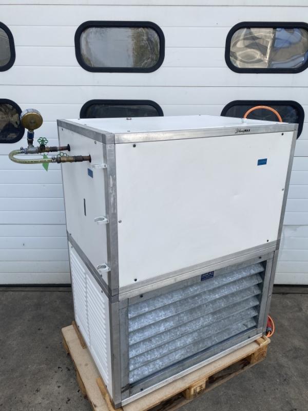 Hersteller: Güntner GmbH Medium: Wasser Glycol 70/30% Mediumtemperatur: Eintritt 90º C.Austritt 70º C. Wärmeleistung: 500kW Lufttemperatur: 30º C. (Eintritt) Lufttemperatur: 75º C. (Austriit) Ventilatoren: 2 Stück, 1,1kW, 400V, 50Hz, 3 Leiter Anschluß: Eintritt DN80, Austritt DN80 Abmessungen: LxHxT = 4000x1300x900mm Gewicht: 550kg Schalldruckpegel: 50 dB(A) 10m Entfernung, Baujahr: 2018 Kondition: Sehr gut, Dichtheit und Ventilatoren geprüft. Lufterhitzer, Notkühler, Rückkühler