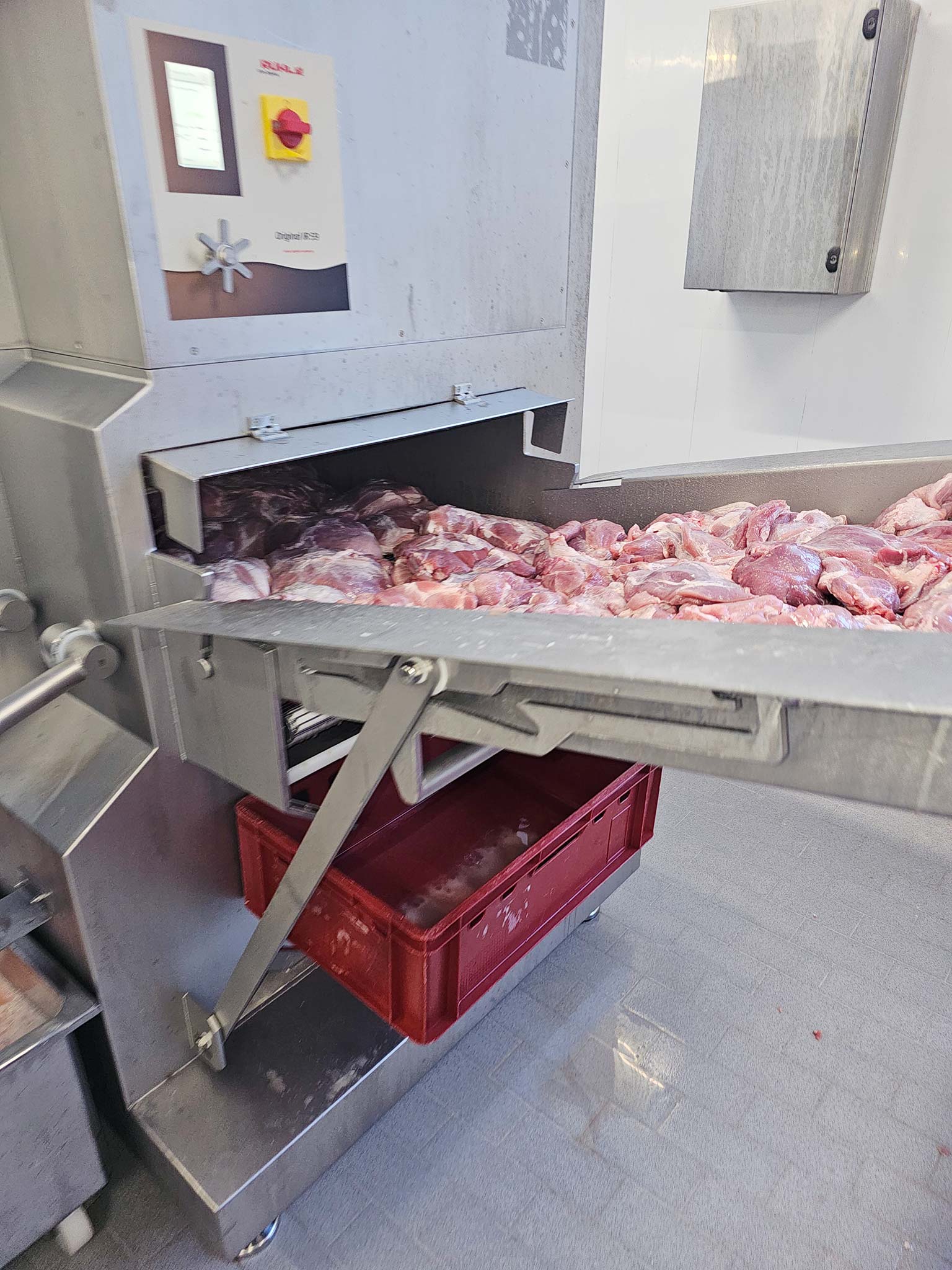 Rühle SR 2 Turbo Würfelschneider, Speckschneider, mit Beschickung, Touch-PC Steuerung, Förderband, Werkzeugmagazin, verschiedene Gatter, Schneidtemperatur -5°C - +80°C, Schneidleistung: max. 3000 kg/h. Die Maschine ist kurzfristig verfügbar und kann gerne in Koblenz, Rheinland-Pfalz getestet werden.