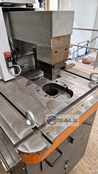 Gebrauchte Indumasch VA200/6 Kombi. Ref.00851 Bezeichnung der Anlage Stanz-Klink-Combimaschine inklusive Werkzeuge im Wert von 2900 Euro Hersteller Indumasch Model VA200/6 Kombi Baujahr 2010 Verstellbarer Winkel an der Klinkseite. Einstellbereich 15° - 70° je Messer einzeln einstellbar. Stanztisch mit Verlängerung Viel verschiedenes Stanzwerkzeug. (siehe Bilder) Maschine wäre ab sofort verfügbar. Informationen von der Auftragsbestätigung vom Jahr 2010 – zur Information Ausklinkstation Mit verstellbarem Messerschneidkopf 30-140Grad 200 Messerlänge 6mm Schnittleistung / Stahl 4mm Schnittleistung / VA – Stahl Automatischer Schnittspaltverstellung 4 TNuten 5 Fache Ablesemöglichkeit des Maßbandes Innenanschlag 2 Blechniederhalter