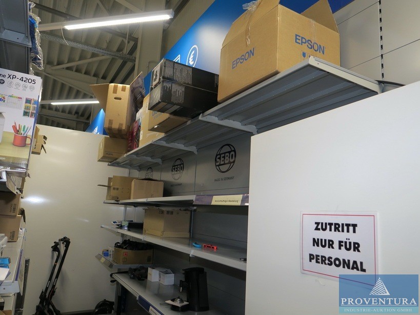 Reklamationswaren Inhalt von 2 Regalen, bestehend aus ungeprüften Reklamationen und Verbrauchsmaterial im Raum hinter dem Kassenbereich