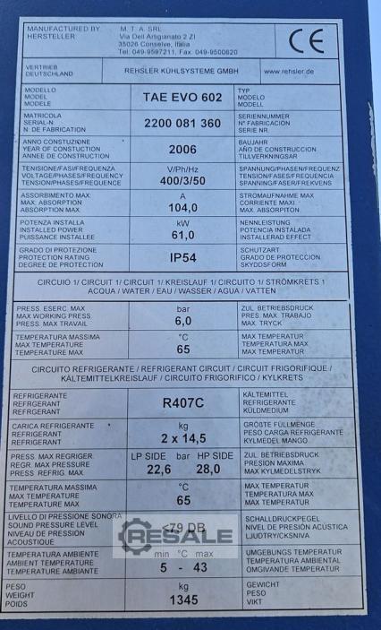 Rehsler TAE EVO 602 Kaltwassersatz luftgekühlt