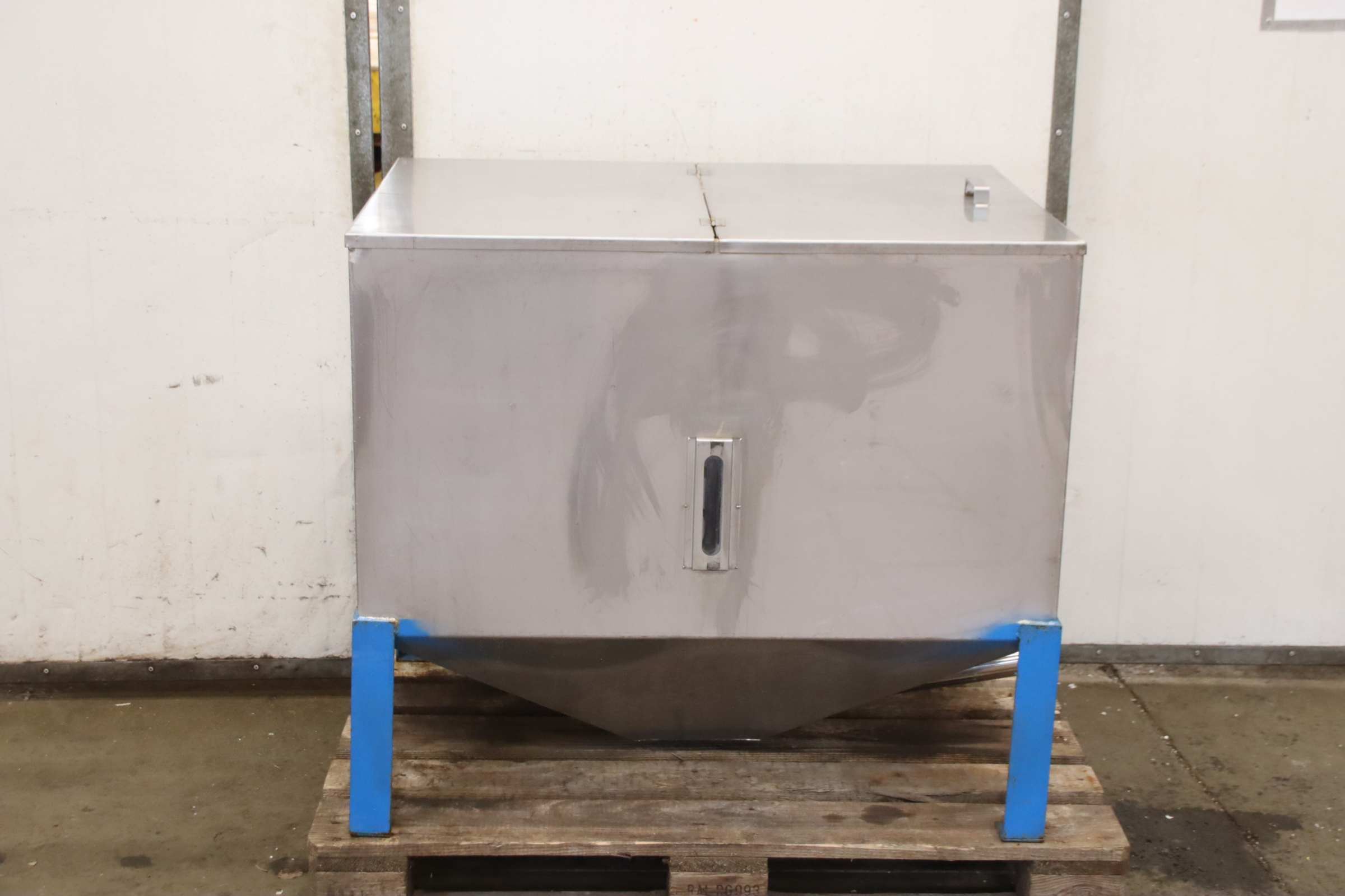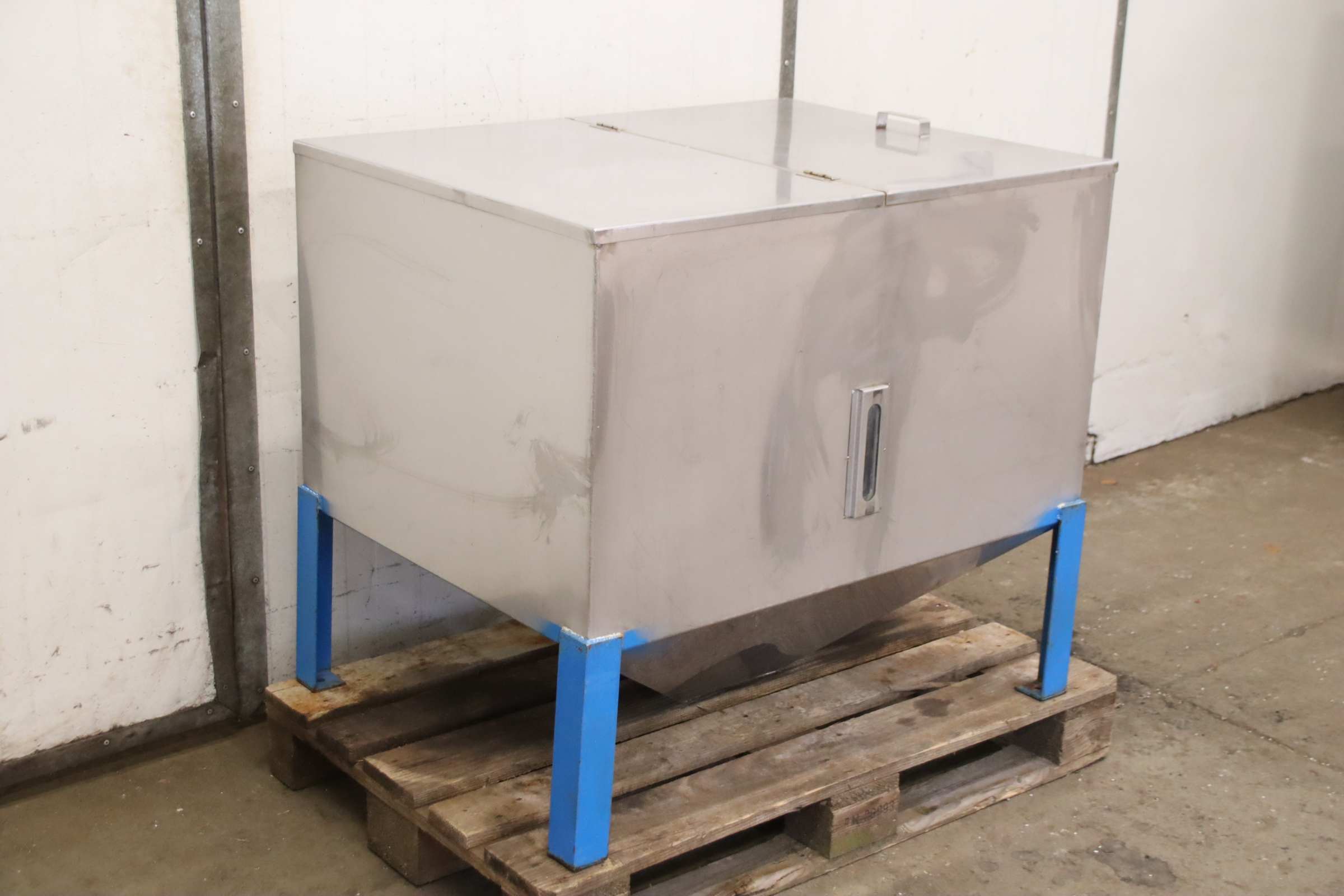 Behälter, Granulatbehälter, Lagertank, Pulverbehälter, Farbpulverbehälter, Lagerbehälter, Siloanlage, Tank, Silo, Polypoprylen-Behälter-Siloanlage: Granulatbehälter Polypoprylen-Behälter mit Füllstandsanzeige-Fassungsvermögen: ca. 550 Ltr-Behälter: Edelstahl-Maße: siehe Fotos / techn. Zeichnung-Abmessung: 1000/760/H890 mm-Gewicht: 79 kg