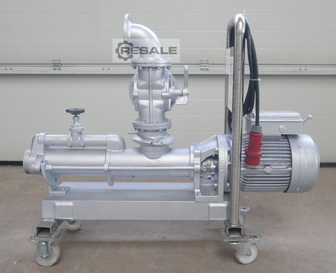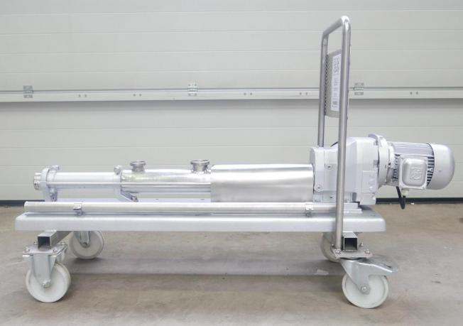 Excenterschneckenpumpe Edelstahl Hersteller: CSF inox Statordurchmesser: 140 mm Statorlänge: 290 mm Getriebe: Motovario (Italy) Nr.: 8816900 Typ: TK 100 190-1000 min-1 Motor: Ercole Marelli (Italy) 380 V, 50 Hz, 7,5 kW Maße: LBH=2300x460x600mm Gewicht: ca. 400 kg Zustand sehr gut