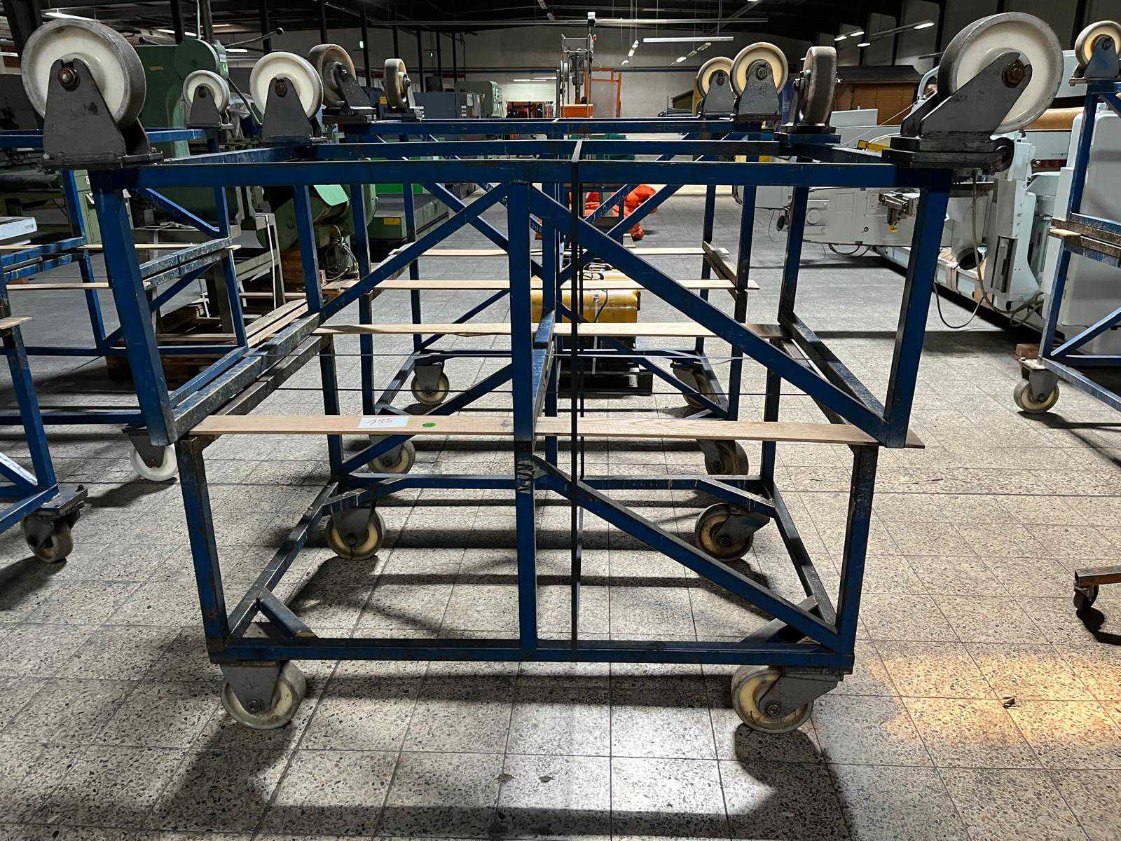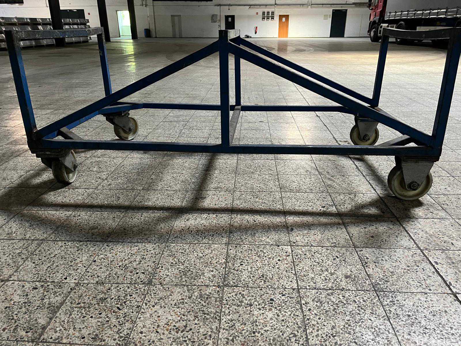 Höhe: Ca 900 mm Beite 1.250 mm Länge: 1.500 mm; Schwerlastrollen bis 1.200 kg belastbar; Je 2 x Bockrolle; 2 x Lenkrolle Auktions-ID: A7-45983-134