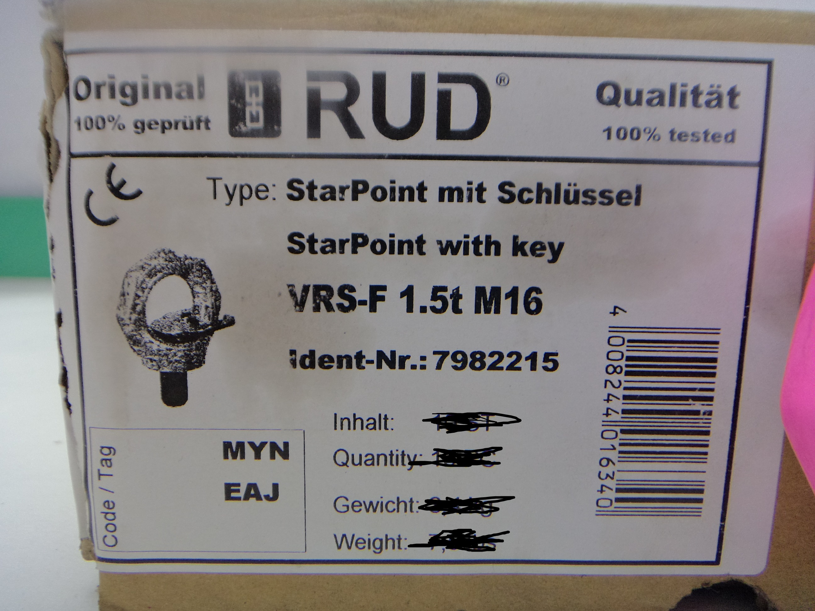 Ringschrauben mit SchlüsselRUD10 Stk. StarPoint mit SchlüsselVRS-F 1.5t M167982215Tragfähigkeit: 1,5 tNeu !Abmessungen: (Kiste) 220 x 150 x 110 mm