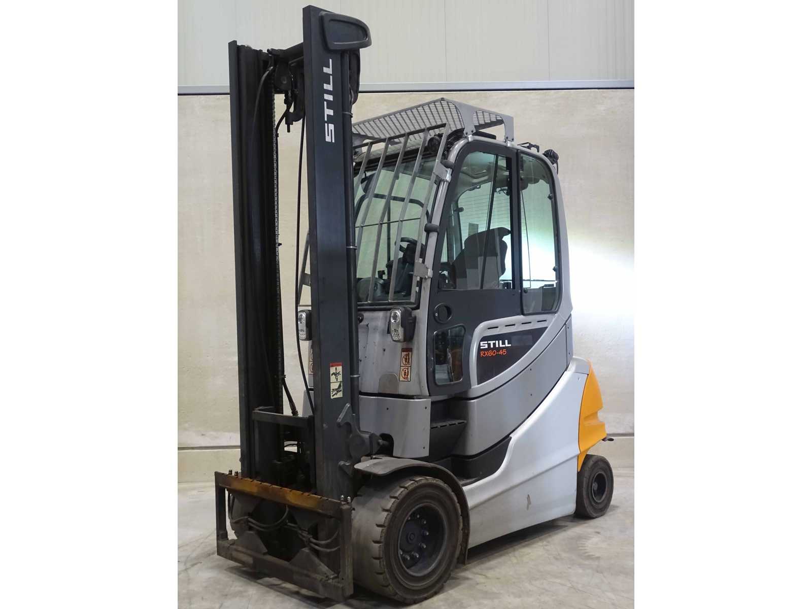Equipment: 7514704 Hersteller: STILL Typenbezeichnung: RX60-45 Betriebsstunden: 7518 h Baujahr: 2018 Hubgerüst: Teleskop-Hubgerüst Bauhöhe: 3.250 mm Nennhub: 4.880 mm Hydraulikbetätigung: Joystick4+ Batterie inklusive: inklusive Tragkraft: 4.500kg Zustandsbeschreibung: Mastrollen und Neigezylinder Spiel Gabelträger ausgeschlagen Batterietür Verkleidung beschädigt Lackschäden Auktions-ID: A7-45634-129