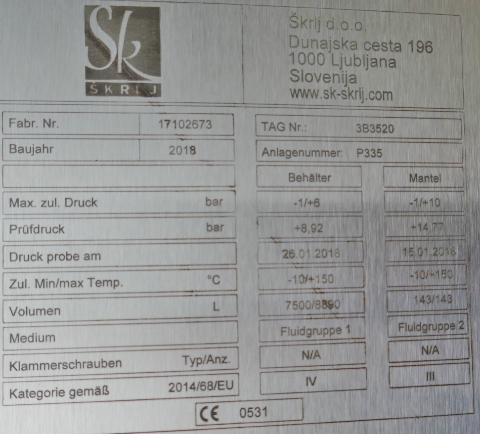 gebraucht,Volumen: 100.000,Vakuum: 1,0,Max. Überdruck: