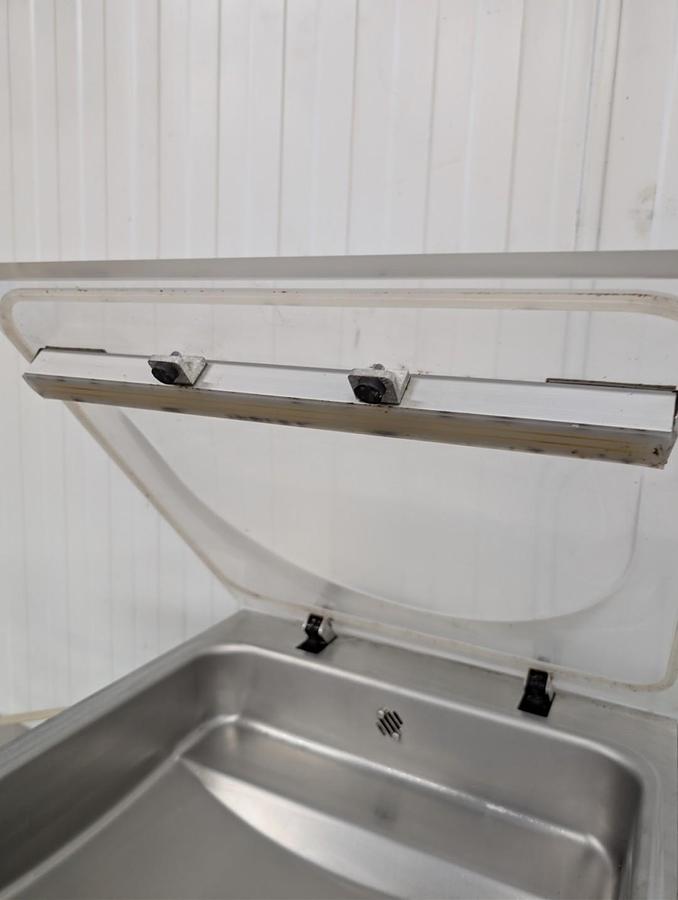 Verpackungsmaschine Rühle VR1, Schalensiegler, mit 2 verschiedenen Siegelwerkzeugen, für Schalengröße 187x137mm und 325x265mm (1/2 GN), inklusive 4 Kartons mit Schalen 187x137x83mm Baujahr 2016, nur sehr wenig gebraucht, ca. 60 Betriebsstunden, Maße BxTxH 65x72x172cm, Anschluss 230V, sehr guter Gebrauchtzustand, voll funktionsfähig