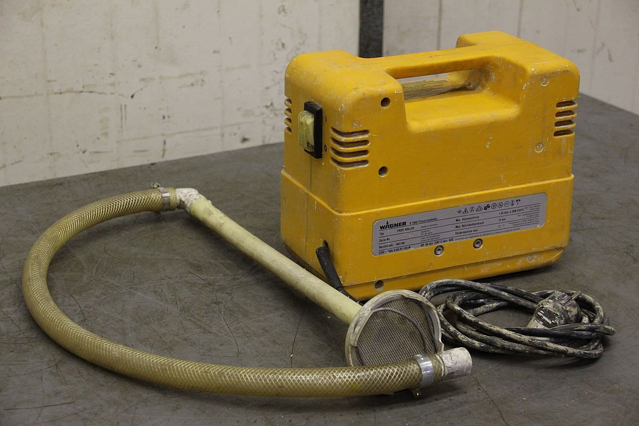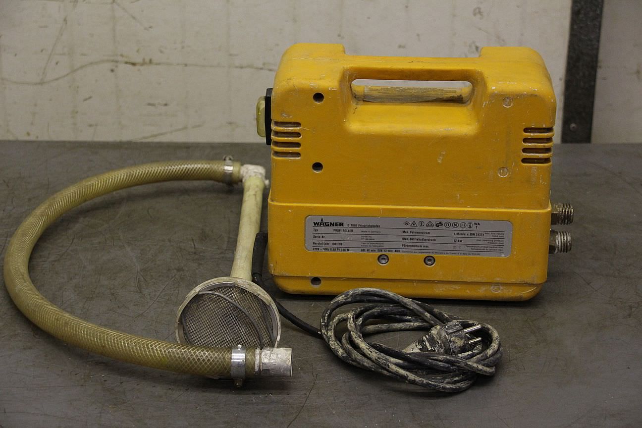 pneumatische Kolbenpumpen, Airless Hochdruckpumpe, Luftmotor, AIR MOTOR, Lackpumpe-Rollen mit: Airlesstechnik (ohne Rollen)-Kolbenpumpe Hersteller: Wagner-Typ: Profi Roller-Materialvolumen: max. 1,8 l/min-max. Druck: 12 bar-Materialtemperatur: max. 35 °C-Anzahl: 2x Pumpen vorhanden-Preis: pro Stück-Abmessungen: 270/145/H225 mm-Gewicht: 7,1 kg