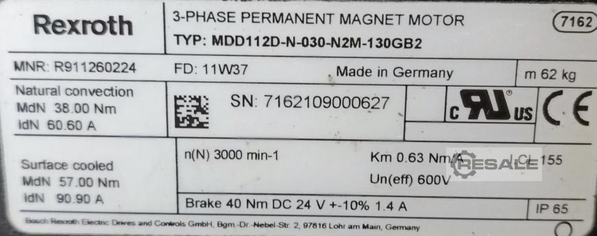 Rexroth, Permanent Magnet Motor, max. 57Nm, 3000rpm, 62kg,