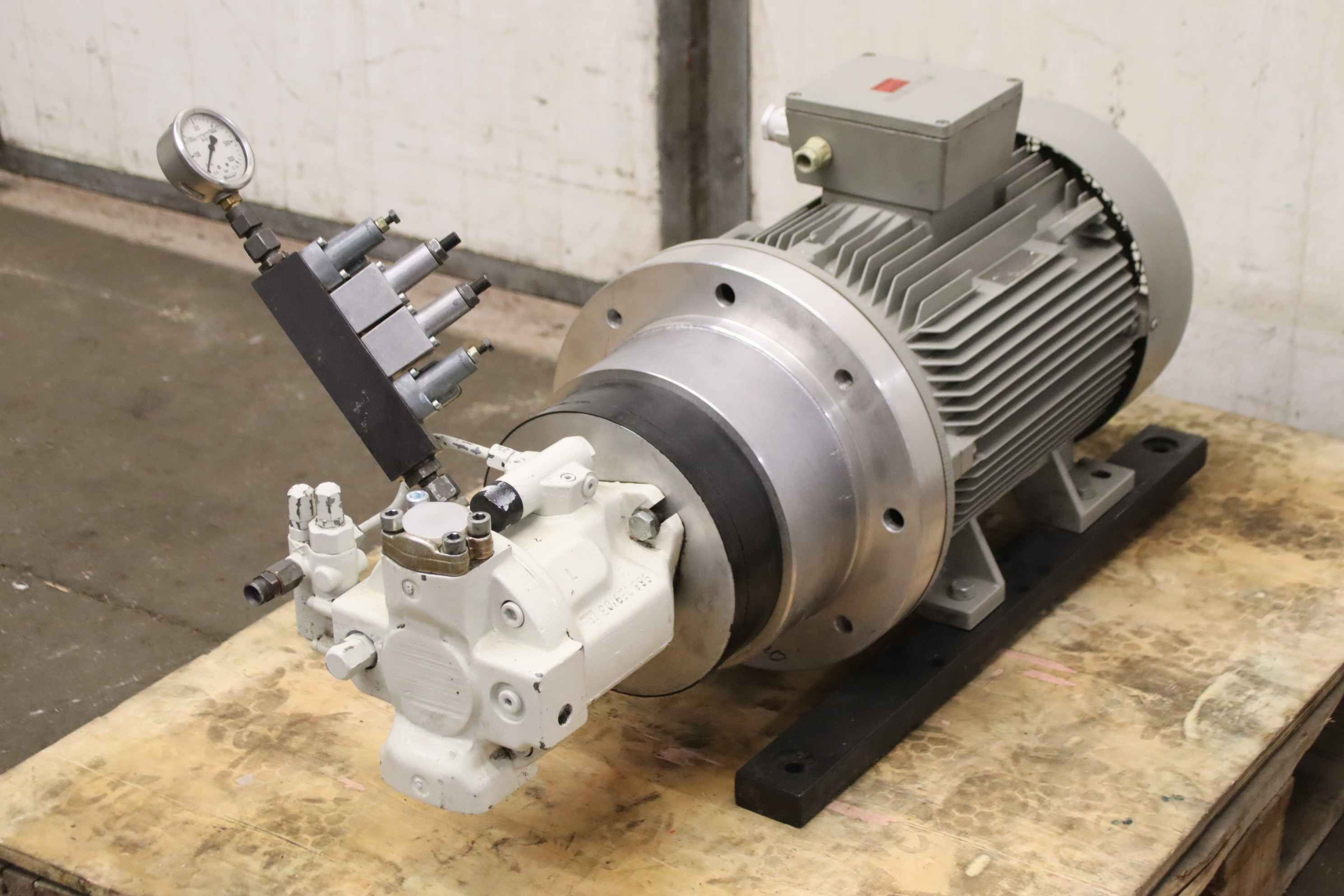 Gebrauchte Rexroth LA10VS0 45 DFLR/31R-PPA12N00. Axialkolbenpumpe, Hydraulikpumpe, Ölpumpe, Zahnradpumpe -Hersteller: Rexroth -Pumpe: Typ LA10VS0 45 DFLR/31R-PPA12N00 -Elektromotor: Siemens -Typ: 1 LA5163-4AA96-Z IEC160M -Antrieb: 11 kW -Drehzahl: 1460 U/min -Abmessungen: 950/500/H510 mm -Gewicht: 138 kg