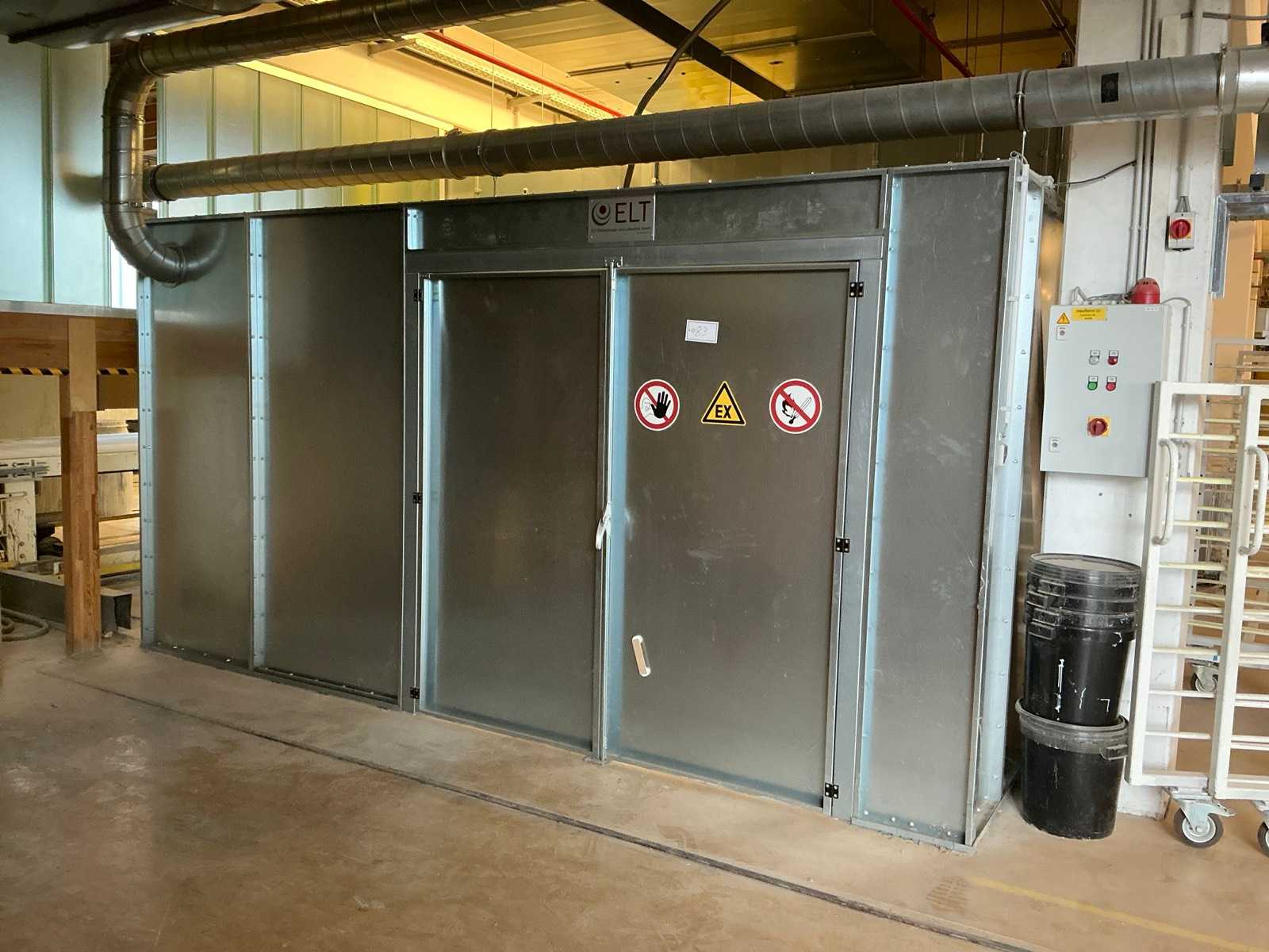 Heizmedium: Erdgas Heizleistung: 75 kW Umluftmotor: 3,00 kW maximale Trocknungstemperatur: 160 °C bei einer Luftgeschwindigkeit von 4.000 m³/h Lüftung Typ: RVE63-630/777 85 T, Baujahr 2005. Leistung: Volumenstrom 20.000 Motorleistung: 11 kW Temperatur: Ausgelegt für eine Mediumtemperatur bis zum 250 Grad Celsius. Transportabmessung: circa. 24 x 5 x 5 m (L/BH) Auktions-ID: A1-45447-16