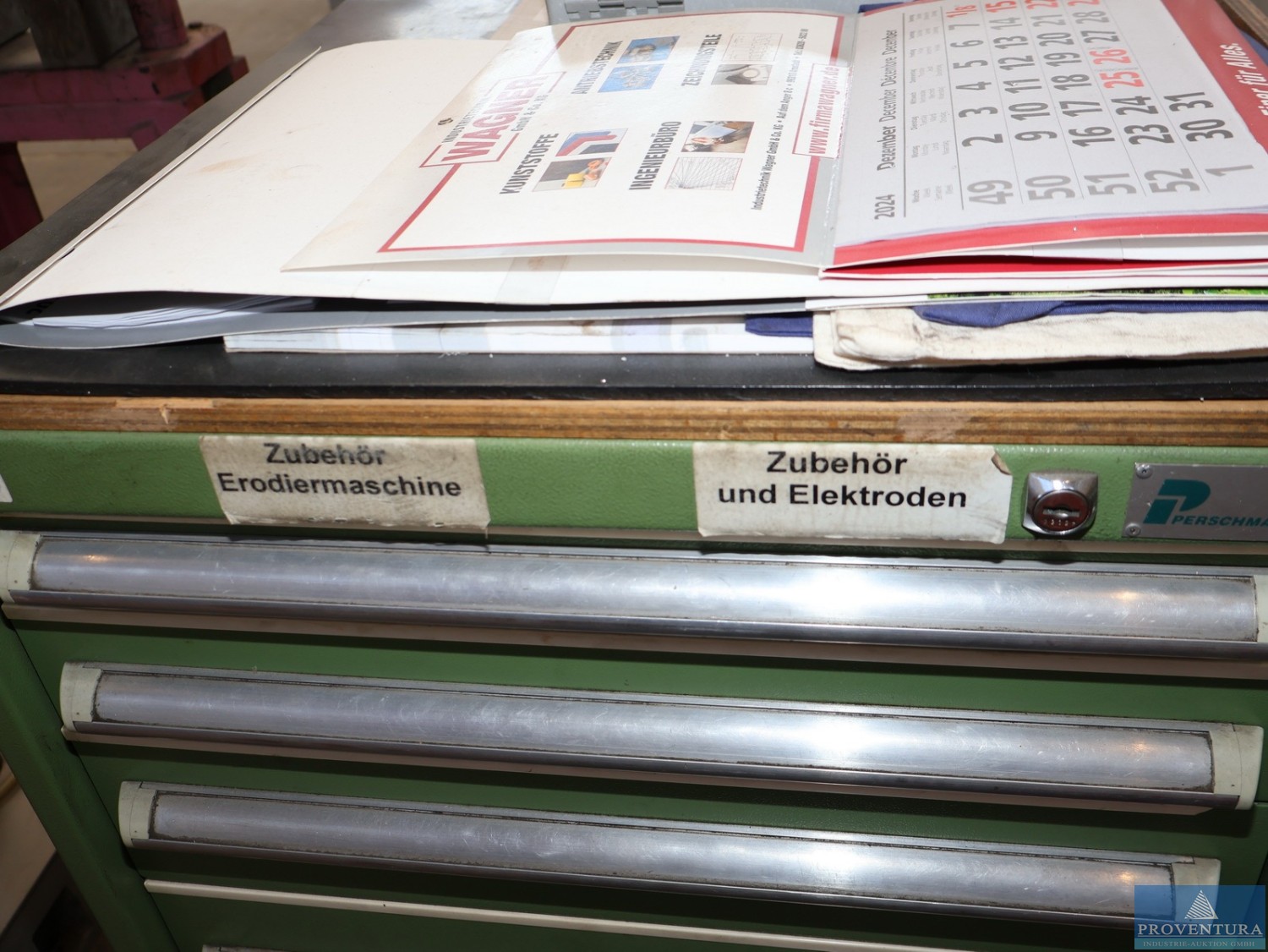 Magazinschrank PERSCHMANN ca. 500 cm, 6 Schubladen grün, ohne Inhalte