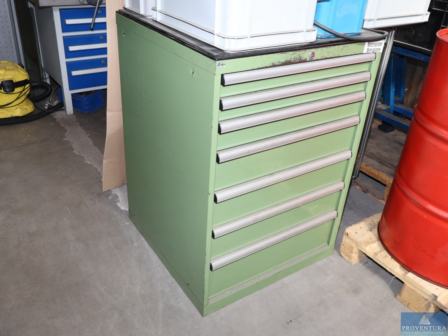 Magazinschank LISTA grün ca. 700 mm 7 Schubladen, ohne Inhalte