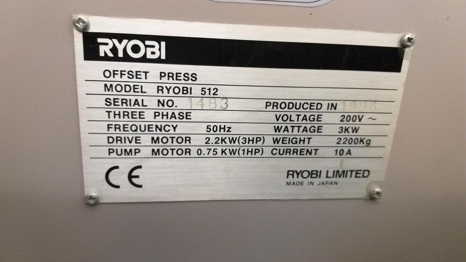 1996 RYOBItwo-color printing press 512 1325 EUR [Jun 2017]
