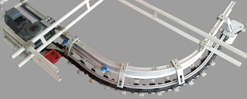 OMNIFLO Hängeförderer System Linearführung angetriebene Kurve