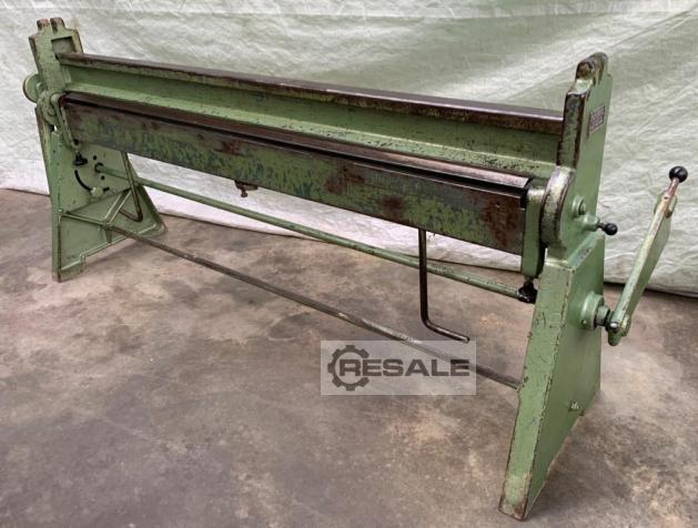 mit klappbarem X-Untergestell Maschine wird vom Fachmann repariert, geprueft, gereinigt und ist dann voll funktionsfaehig. Testlauf wird durchgefuehrt. Blechbreite: 1000 mm Blechstärke Stah: 0,8 mm Blechstärke Alu: 1,0 mm Blechstärke VA: 0,5 mm Farbe: blau Raumbedarf: 1240 x 692 x 1150 mm Maschinengewicht: 38 kg ohne Rollenschere Öffnungsweite: 45 mm Biegewinkel: 150 Grad Maschinennummer: TB 3482