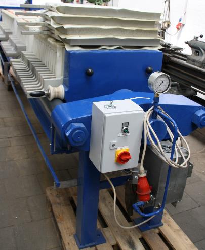 gebraucht, kpl. überholt, 1 Jahr Garantie, Plattenformat 630 x 630 mm, 50 Platten, geschlossener Auslauf, 30 mm Kuchenstärke, Druck max. 15 bar, Inhalt ca. 480 Liter, Filterfläche 33m², Maße 4300 x 1200 x 1200 mm, Gewicht 2,2 to, Motorhydraulik, Tropfblech, Filtratrinne, mit oder ohne Filtertücher
