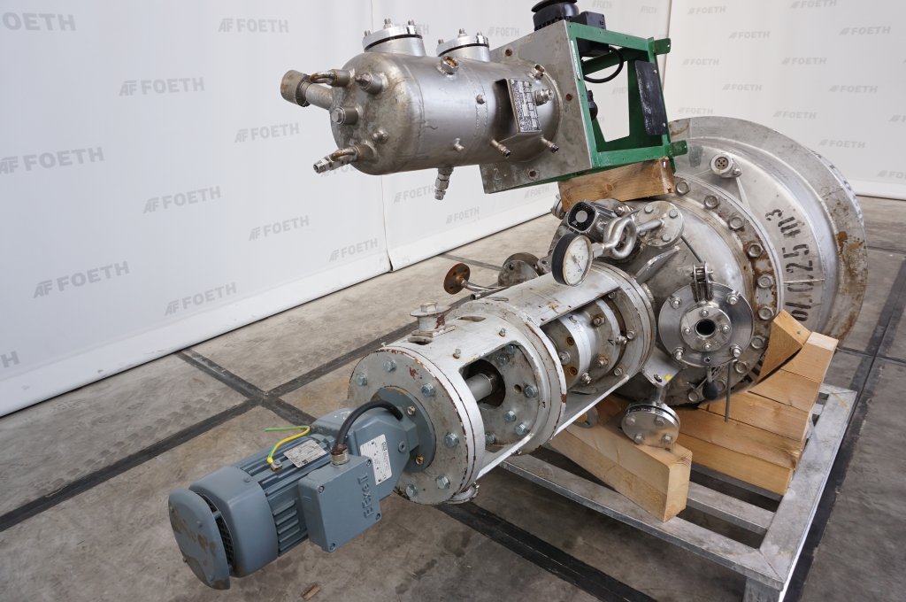 General SKU012Y112 HerstellerUTV Chemie Equipement S.A. TypM-40 SL №3782 Baujahr1993, Reconditioned in 2003 by RPA Process StandortBarneveld Pressure Betriebsdruck0 Bar Vakuum möglichcheck Betriebsdruck Doppelmantel4 Bar Haupteigenschaften MaterialBaustahl Inhalt250 Ltr. Motor45 KW Spezifizierte Eigenschaften - Z-kneter MaterialBaustahl Z-Kneter(1x) Inhalt400 Ltr, Useful capacity 250 Ltr Muldenabmessungen845x700x750mm Mit Deckelcheck Mit Doppelmantelcheck Einseitiger Antriebcheck Mit Stopfbuchspackungencheck Motor45,0 KW (Ex) Armendrehzahl± 15,5/22 Rpm Hydraulische kippungcheck Mit Hydraulikaggregatcheck Information Platzbedarfmixer without drive unit 2,2x1,1 M Totalhöhe1,8 M ATEX konformecheck Was Sie von Maschinen von Foeth erwarten können: -- Maschine funktioniert fähig -- Zu einem reduzierten Preis im Vergleich zu Neuem -- Bereit, überall auf d ...
