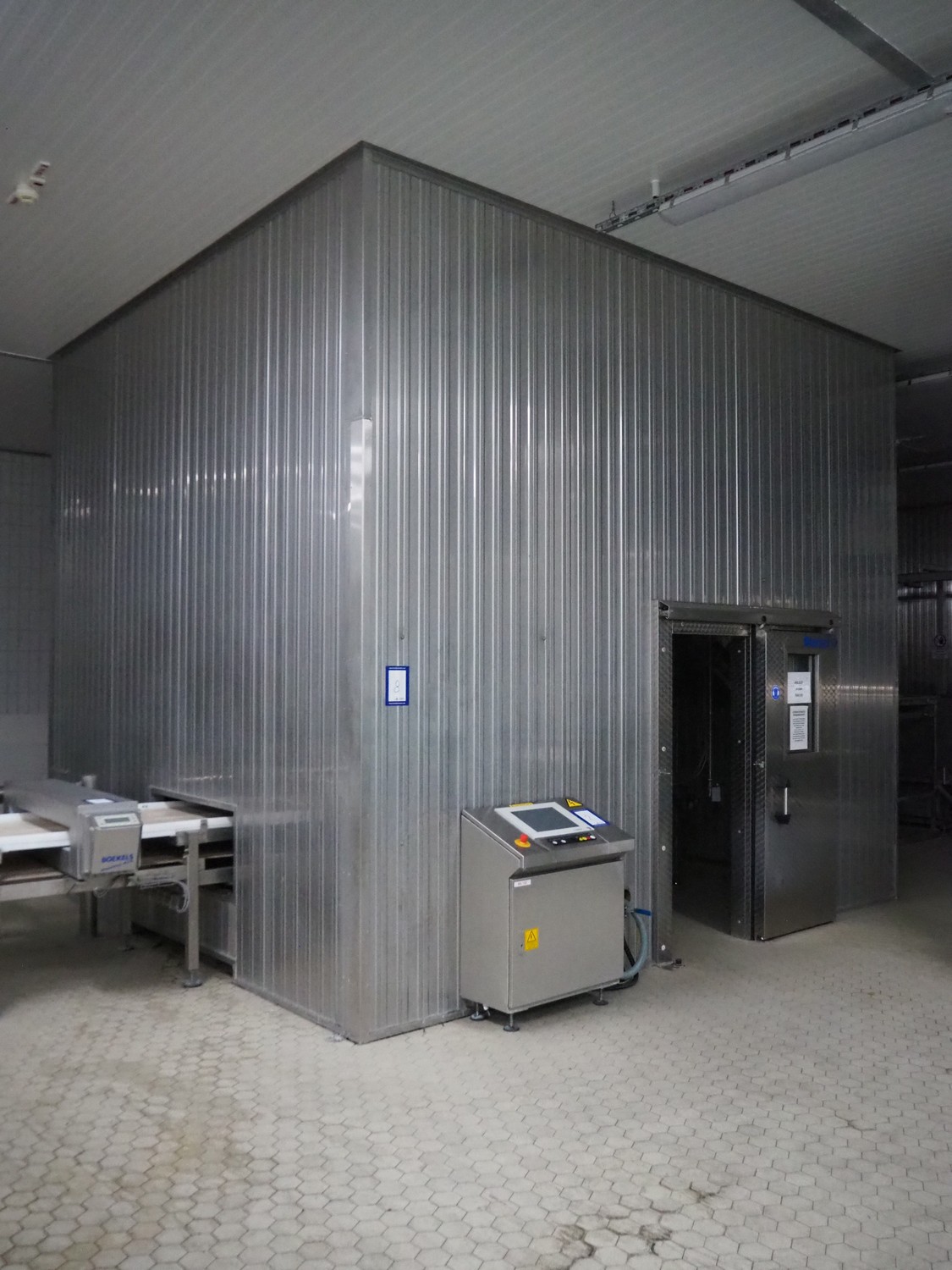 NN room for laser sorting, s/s isolated panels with 2 Sterkel sliding doors, type: 20, fabrication number: 2973701 & 2973702, year of construction: 9 2003, dimensions: 880 mm x 80 mm x 2030 and 1280 mm x 80 mm x 2220 mm, total dimensions: 5100 mm x 4600 mm x 4350 mm.