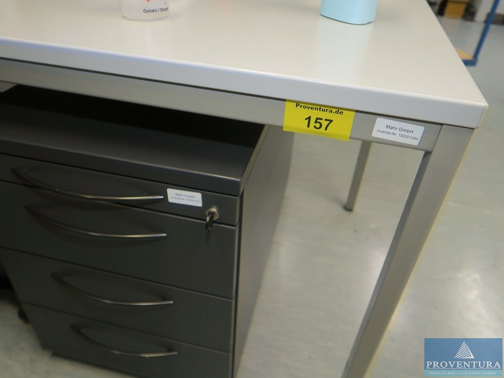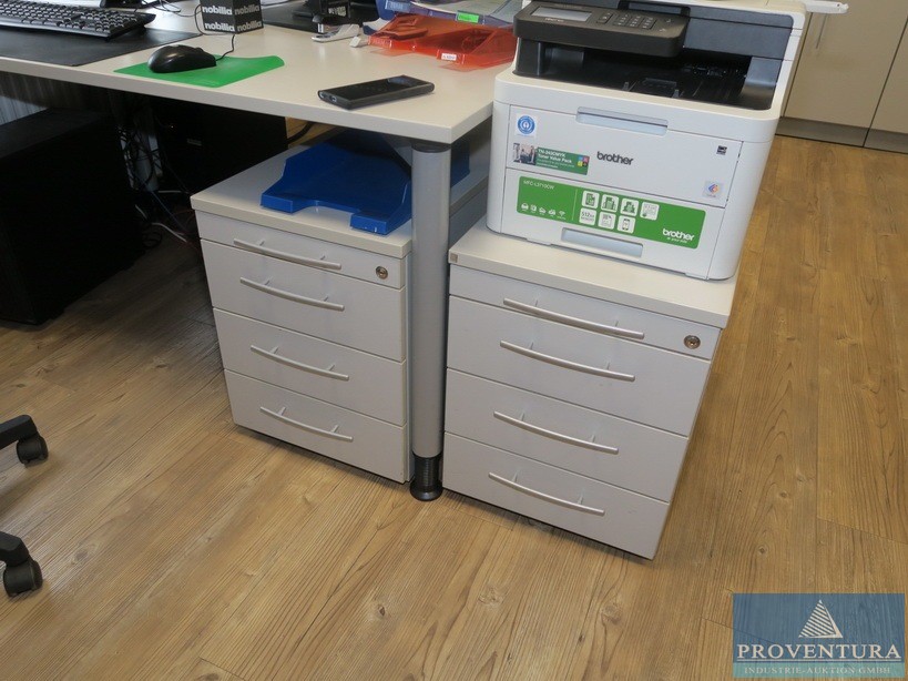 Schreibtisch lichtgrau ca. 180b cm, Schubladencontainer, Unterbaucaontainer