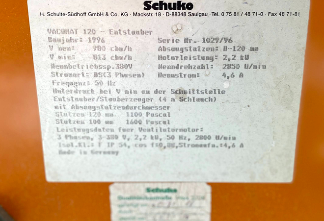 | SCHUKO | Schuko Absaugmobil Vacomat 200 | 4200 EUR | [Jul 2016] | |