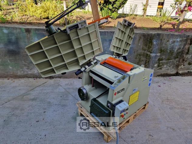Gebrauchte SCM M2. Arbeitsbreite 200mm Motorleistung 18,5kW Maximale Elementhöhe 120 mm Stufenlose Regelung der Vorschubgeschwindigkeit manuelle Einstellung der Druckstellung manuelle Einstellung des Drehreglers Maximaler Klingendurchmesser 350 mm