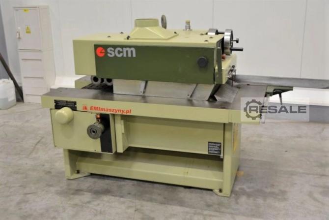 Gebrauchte SCM S63. TECHNISCHE DATEN: Max. Bearbeitungsbreite mm: 630 Max. Arbeitshöhe mm: 240 Installierte Leistung: 7,5 KW Vorschubgeschwindigkeit: 6-18 m/min Walze mit 4 Messern Spannung: 380 Volt Manuelle Bedienung