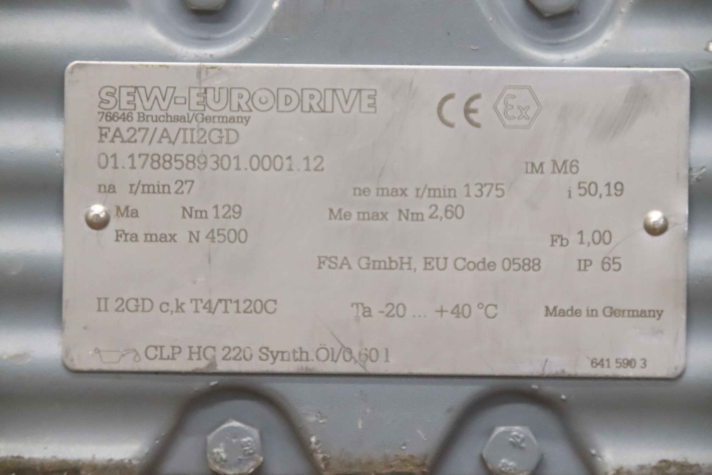 Maschinentyp: Getriebemotor 0,37 kW 27 U/min