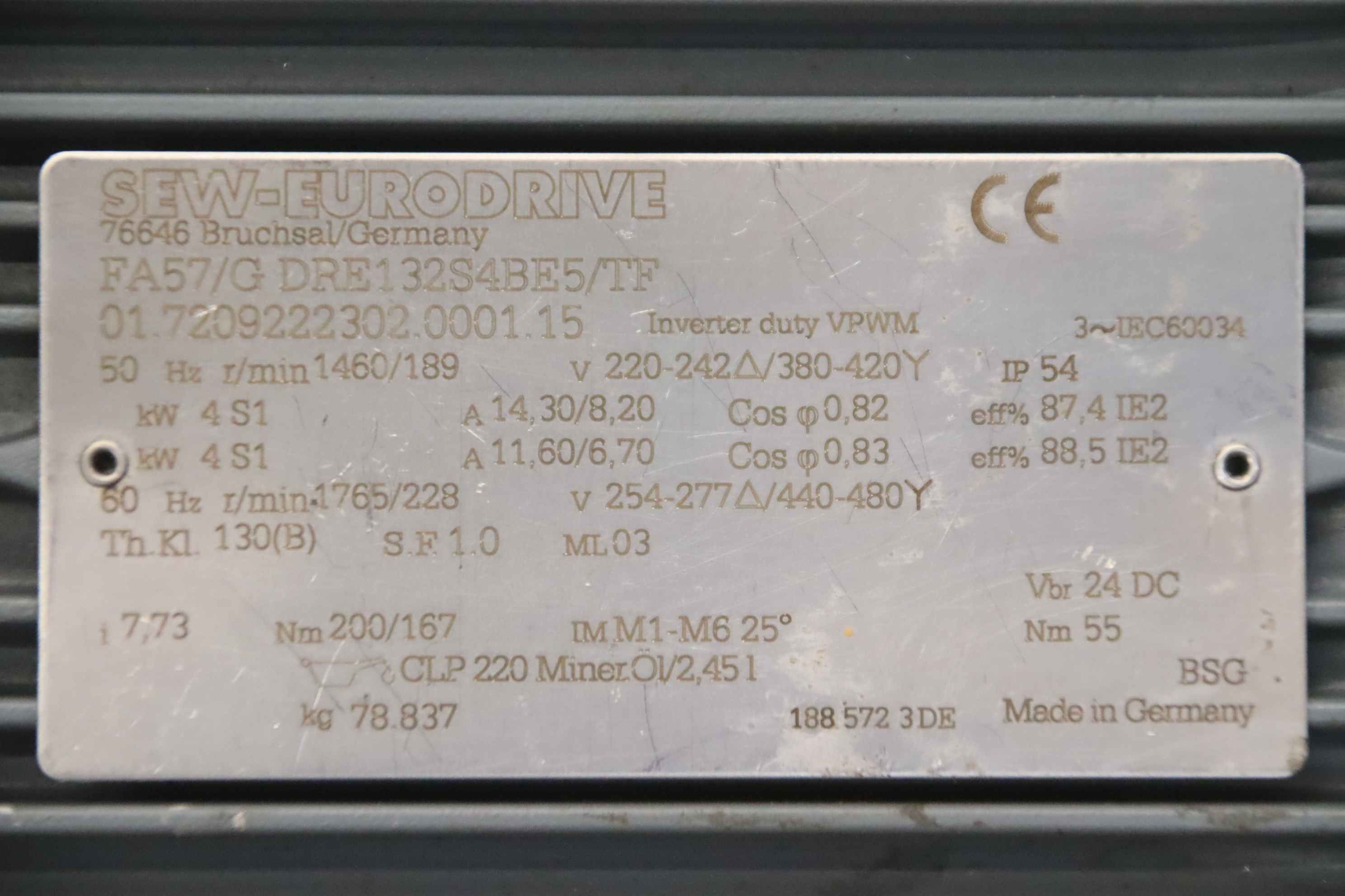 Maschinentyp: Getriebemotor 4 kW 189 U/min